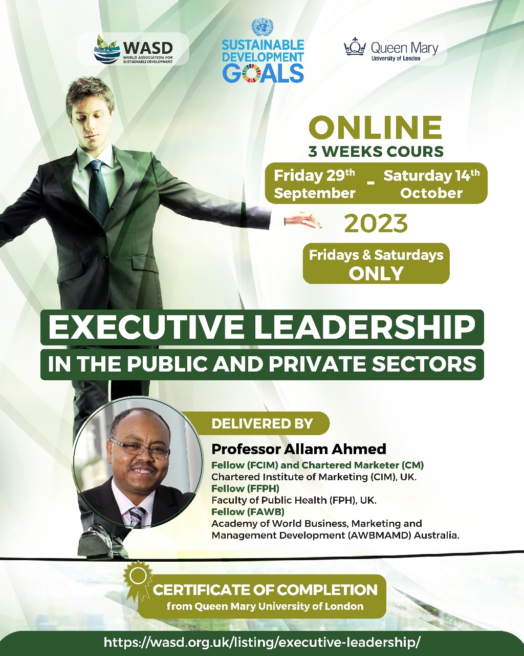 This course has been designed to introduce a variety of perspectives on leadership in the public and private sectors. The course aims to enable leaders and decision makers to introduce fit-for-purpose leadership styles and approaches to their organisations. The course will provide participants within the public and private sectors with the best scientific and management solutions to implement effectively in their organisations. At the end of the course attendees should be able to acquire a comprehensive knowledge and practical experience about leadership styles and approaches in response to the various challenges in the post Covid 19 era.