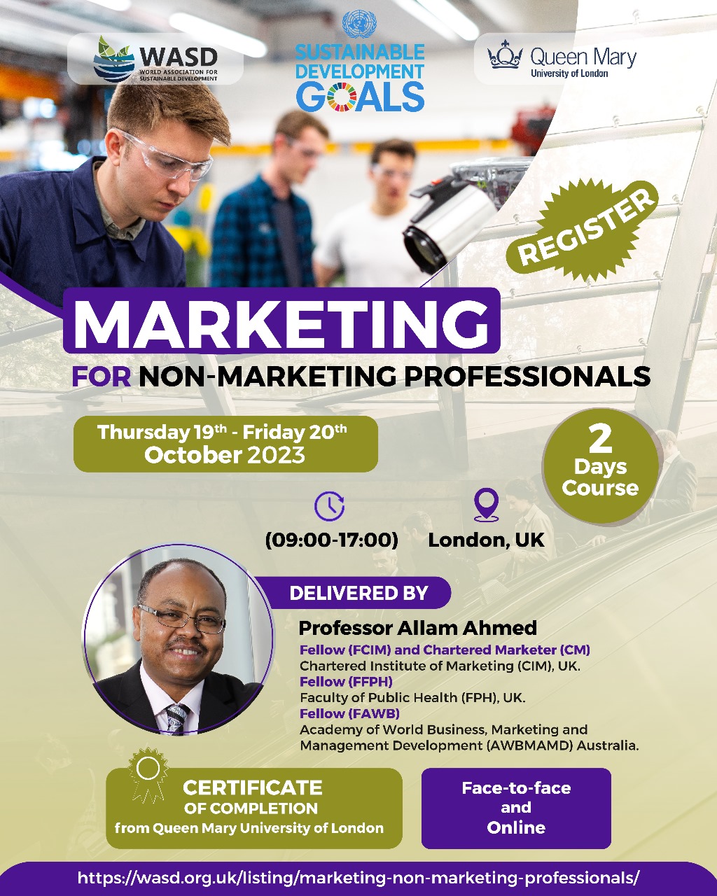 1. At the end of the course participants should have acquired comprehensive knowledge and practical experience about marketing in alignment with their needs and capabilities. Non-marketing professionals will be able to receive more new referrals and increase their sales and customers' satisfaction.